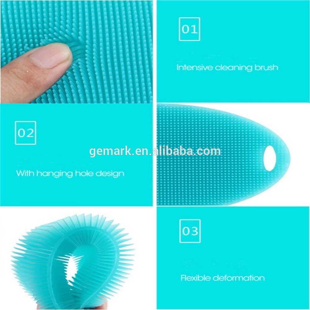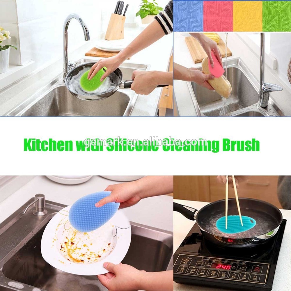 Quality assurance, tensile deformation without fracture;You can use this silicone brush for dishwashing, scrubbing pot or pan, washing fruits and vegetables. and even you can be used to take a shower and shampoo , it will be a perfect heat kitchen mat or glove when in need