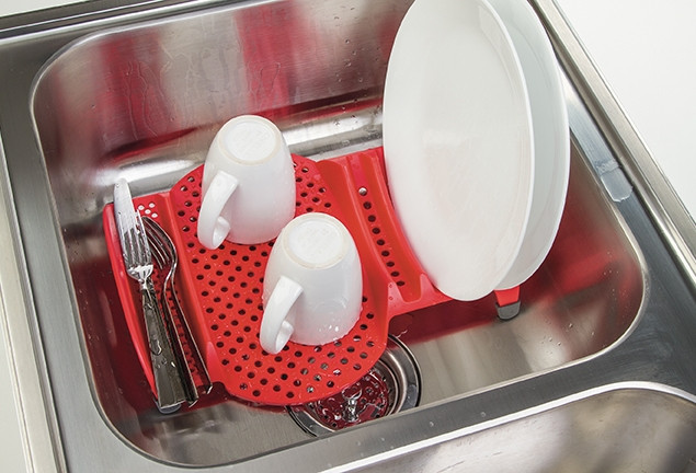 stainless steel rack, expandable to fit sink size,