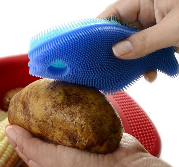 With suction cup on the back, can attach on sink wall, clean cutlery and etc.