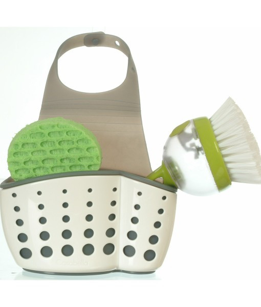 hang on the sink and can hold sponge, brush, cutlery and etc.