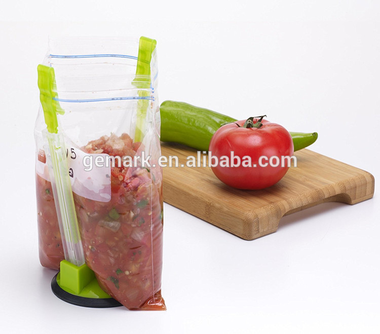 Simply fasten bag under clips and fill; it's like having an extra set of hands in the kitchen