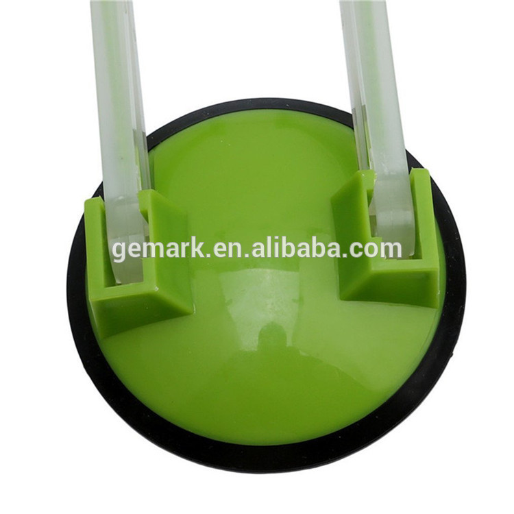 Non-slip rubber base; adjustable arms hold most sizes of storage bags