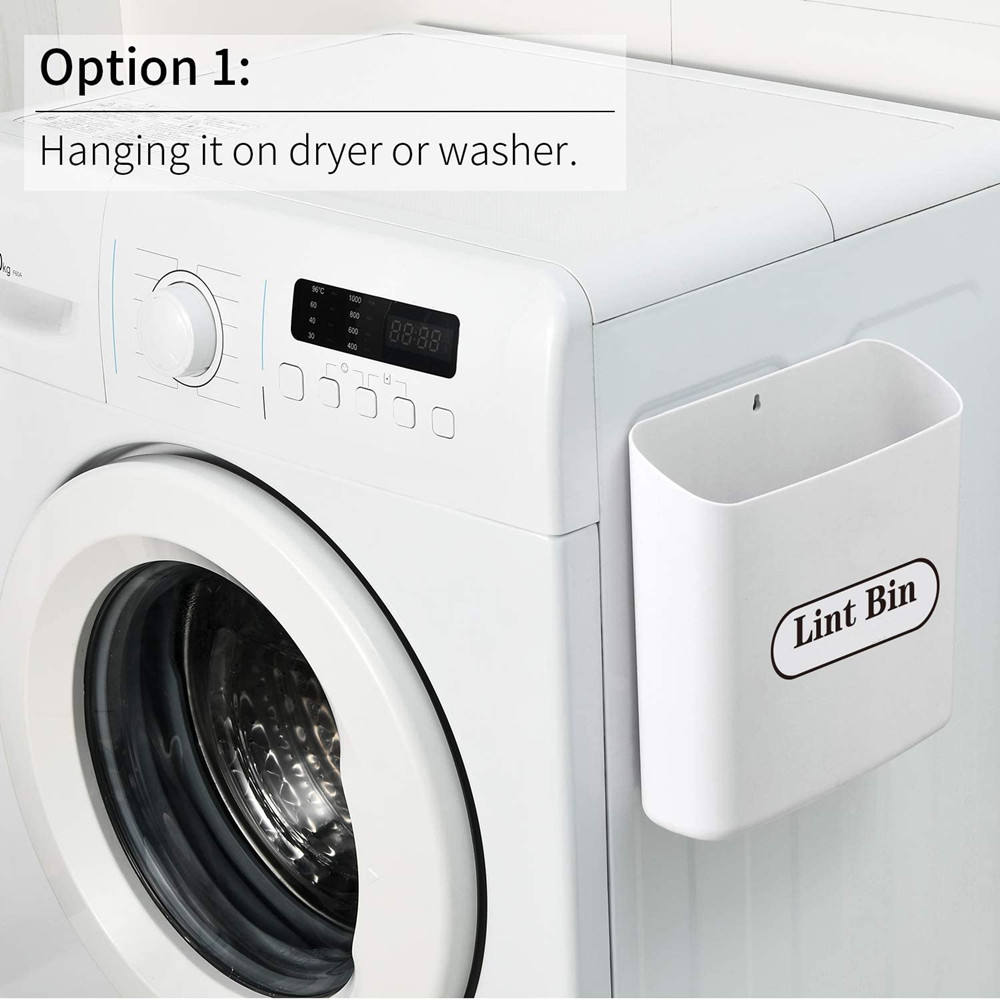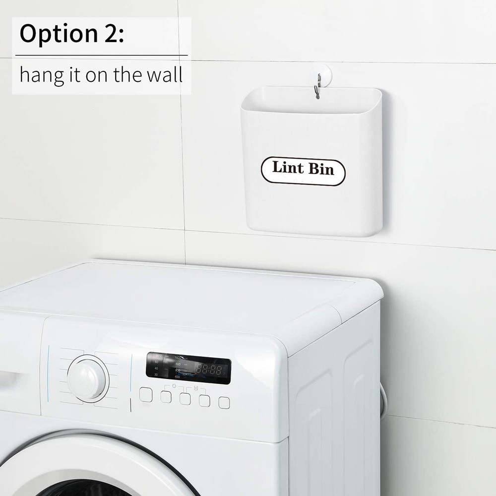 Hang it on the side of the washer/dryer. When you need to clean lint, pet hair, and more in the dryer, you can directly throw