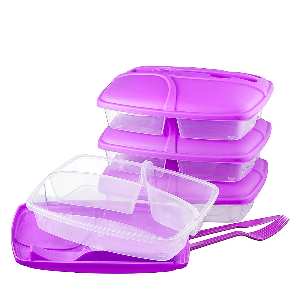 Food safe Plastic 3 divided fruit snack tray Lunch Box