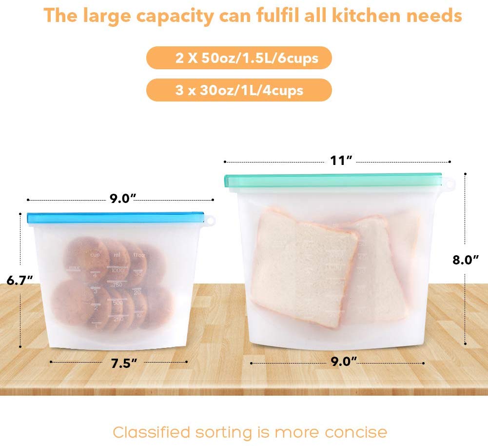 The silicone bags reusable are made from 100% premium food grade silicone, healthy, eco-friendly, zero waste,