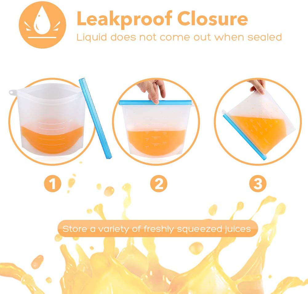 The food storage bags are absolutely airtight and totally leakproof. The bags never stain or retain odors.Keep fresh of milk,