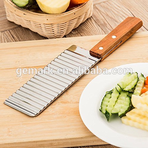 This quality serrator cutter is quality-built featuring a durable corrugated stainless steel blade, brass rivets fastened to a stable easy-grip solid wood handle, perfect in cutting a variety of garnishes, potatoes, carrots, etc